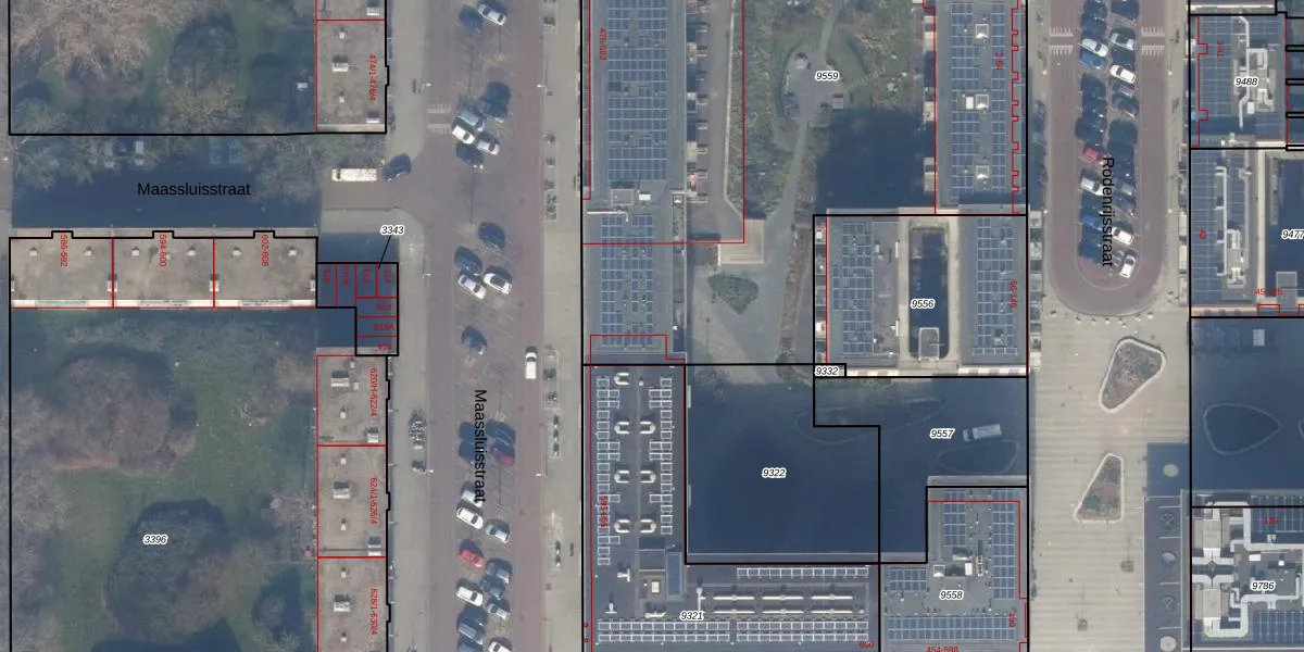 Het perceel waarop Maassluisstraat 539 staat heeft een oppervlakte van 4575 m². Dit is een zeer groot perceel. De perceeloppervlakte wordt geregistreerd door het Kadaster. Gedetailleerde informatie over de maten van dit perceel kunt u vinden in het rapport Kadastrale kaart met maatvoering van Maassluisstraat 539.
