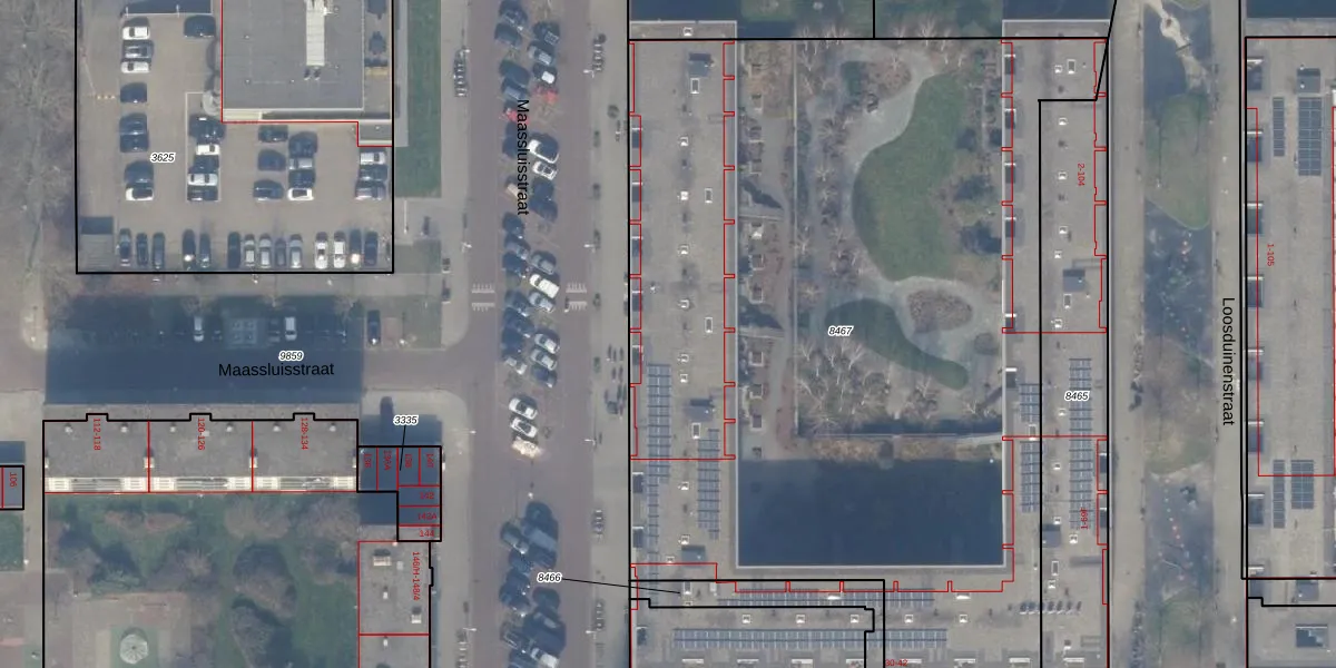 Het perceel waarop Maassluisstraat 55 staat heeft een oppervlakte van 5457 m². Dit is een zeer groot perceel. De perceeloppervlakte wordt geregistreerd door het Kadaster. Gedetailleerde informatie over de maten van dit perceel kunt u vinden in het rapport Kadastrale kaart met maatvoering van Maassluisstraat 55.