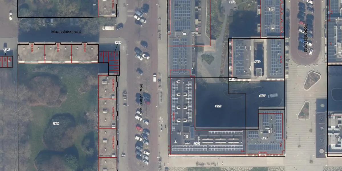 Het perceel waarop Maassluisstraat 597 staat heeft een oppervlakte van 1200 m². Dit is een zeer groot perceel. De perceeloppervlakte wordt geregistreerd door het Kadaster. Gedetailleerde informatie over de maten van dit perceel kunt u vinden in het rapport Kadastrale kaart met maatvoering van Maassluisstraat 597.