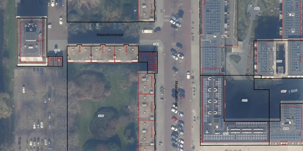 Het perceel waarop Maassluisstraat 620-H staat heeft een oppervlakte van 4683 m². Dit is een zeer groot perceel. De perceeloppervlakte wordt geregistreerd door het Kadaster. Gedetailleerde informatie over de maten van dit perceel kunt u vinden in het rapport Kadastrale kaart met maatvoering van Maassluisstraat 620-H.