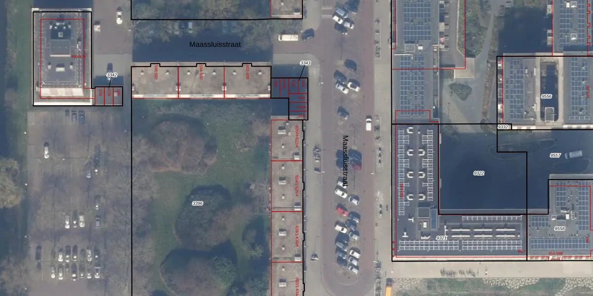 Het perceel waarop Maassluisstraat 622-3 staat heeft een oppervlakte van 4683 m². Dit is een zeer groot perceel. De perceeloppervlakte wordt geregistreerd door het Kadaster. Gedetailleerde informatie over de maten van dit perceel kunt u vinden in het rapport Kadastrale kaart met maatvoering van Maassluisstraat 622-3.