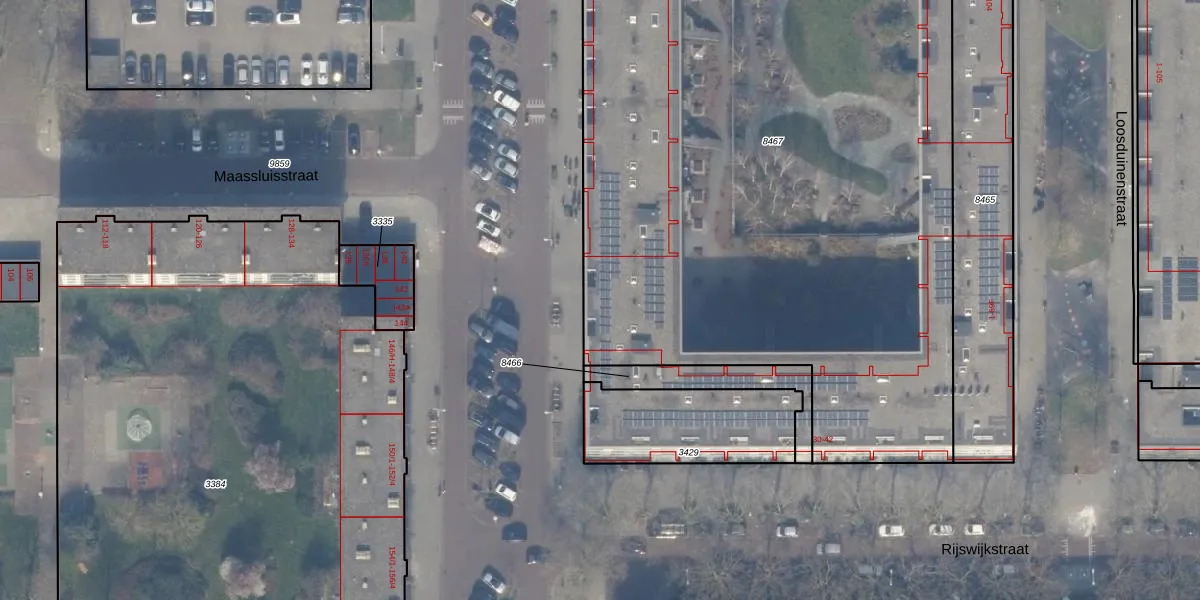 Het perceel waarop Maassluisstraat 65-E staat heeft een oppervlakte van 5457 m². Dit is een zeer groot perceel. De perceeloppervlakte wordt geregistreerd door het Kadaster. Gedetailleerde informatie over de maten van dit perceel kunt u vinden in het rapport Kadastrale kaart met maatvoering van Maassluisstraat 65-E.