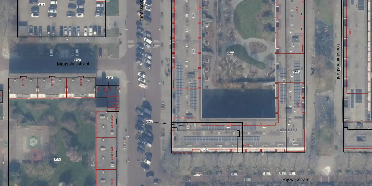 Het perceel waarop Maassluisstraat 69-D staat heeft een oppervlakte van 5457 m². Dit is een zeer groot perceel. De perceeloppervlakte wordt geregistreerd door het Kadaster. Gedetailleerde informatie over de maten van dit perceel kunt u vinden in het rapport Kadastrale kaart met maatvoering van Maassluisstraat 69-D.