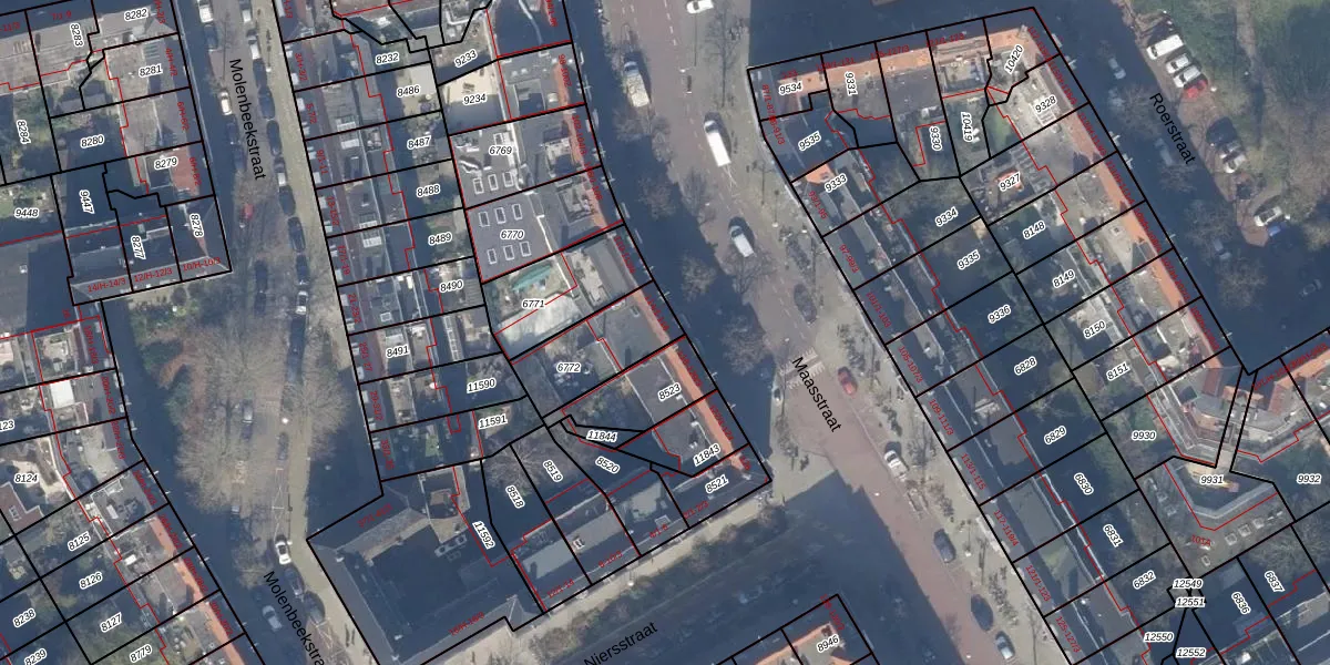 Maasstraat 116 is gelegen op kadastraal perceel ASD18V6772. Deze kadastrale aanduiding is uniek en wordt gebruikt door het Kadaster om eigendomsrechten en andere zakelijke rechten vast te leggen. Het perceel maakt onderdeel uit van de kadastrale gemeente Amsterdam.