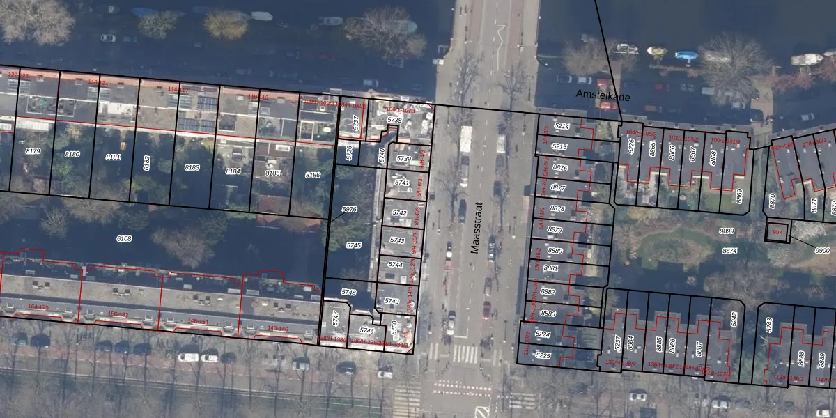 Maasstraat 12-H is gelegen op kadastraal perceel ASD18V5742. Deze kadastrale aanduiding is uniek en wordt gebruikt door het Kadaster om eigendomsrechten en andere zakelijke rechten vast te leggen. Het perceel maakt onderdeel uit van de kadastrale gemeente Amsterdam.
