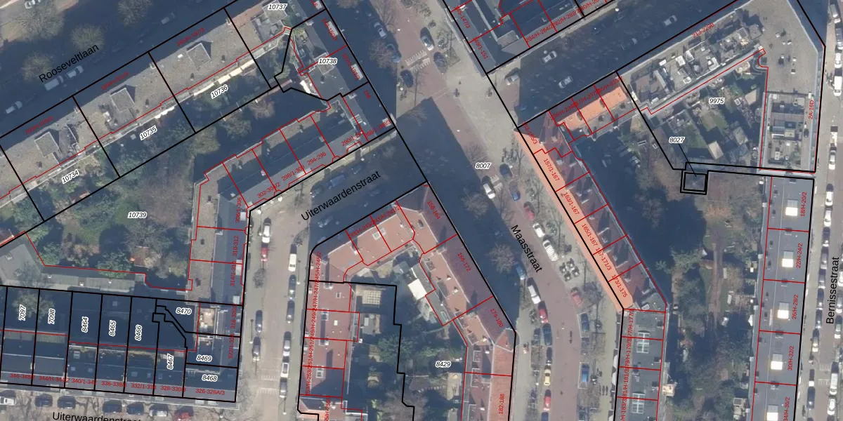 Maasstraat 162-3 is gelegen op kadastraal perceel ASD18V8429. Deze kadastrale aanduiding is uniek en wordt gebruikt door het Kadaster om eigendomsrechten en andere zakelijke rechten vast te leggen. Het perceel maakt onderdeel uit van de kadastrale gemeente Amsterdam.