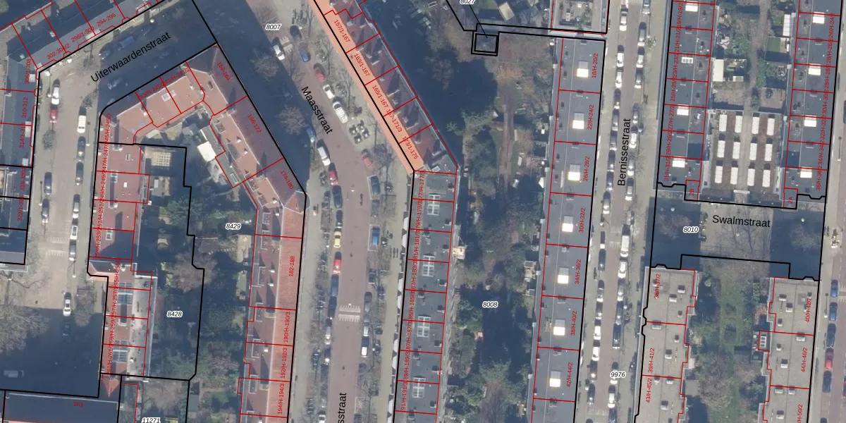 Maasstraat 179-H is gelegen op kadastraal perceel ASD18V8008. Deze kadastrale aanduiding is uniek en wordt gebruikt door het Kadaster om eigendomsrechten en andere zakelijke rechten vast te leggen. Het perceel maakt onderdeel uit van de kadastrale gemeente Amsterdam.