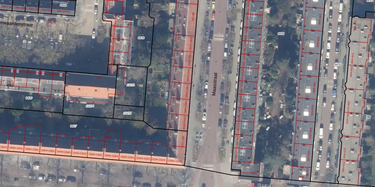 Maasstraat 196-H is gelegen op kadastraal perceel ASD18V8429. Deze kadastrale aanduiding is uniek en wordt gebruikt door het Kadaster om eigendomsrechten en andere zakelijke rechten vast te leggen. Het perceel maakt onderdeel uit van de kadastrale gemeente Amsterdam.