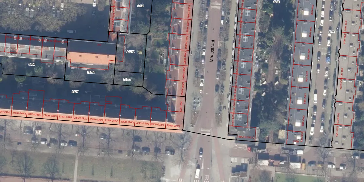Maasstraat 200-H is gelegen op kadastraal perceel ASD18V8429. Deze kadastrale aanduiding is uniek en wordt gebruikt door het Kadaster om eigendomsrechten en andere zakelijke rechten vast te leggen. Het perceel maakt onderdeel uit van de kadastrale gemeente Amsterdam.