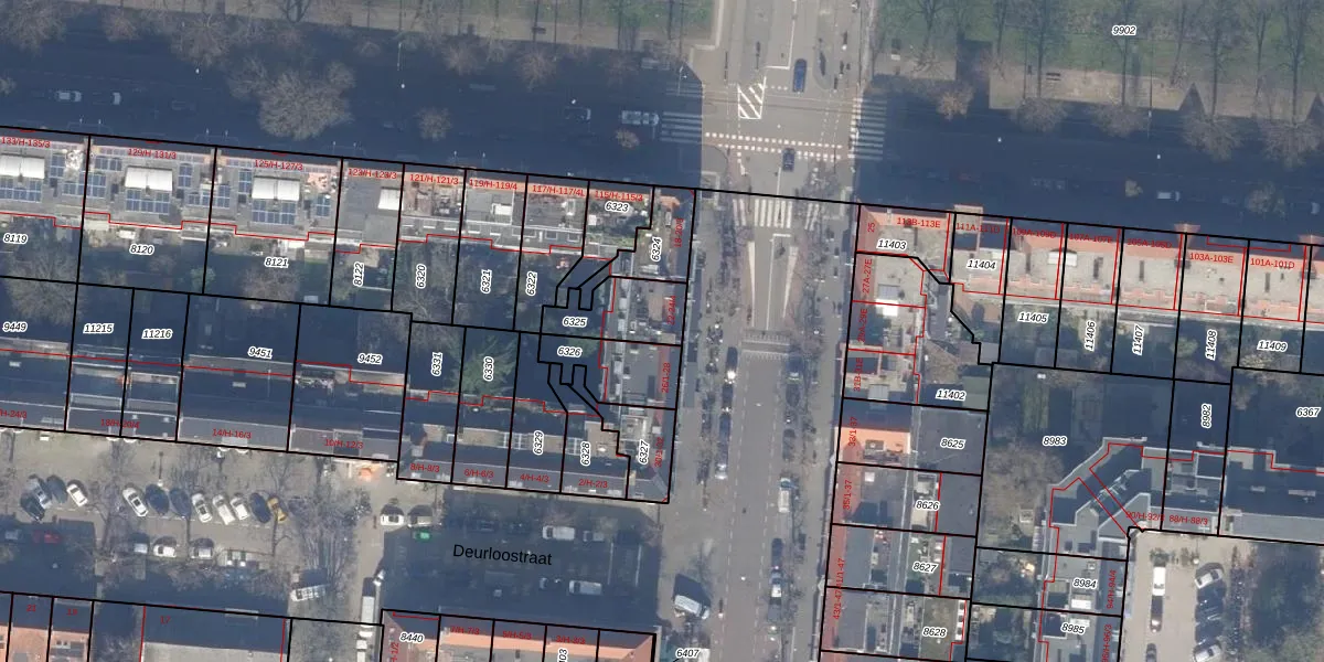 Het adres ligt op het perceel ASD18-V-6325, dat zich in de kadastrale gemeente Amsterdam bevindt. De gemiddelde perceelgrootte in Amsterdam is 559,23 m². Dit perceel is kleiner: de perceeloppervlakte bedraagt 169 m². Het kleinste perceel in de kadastrale gemeente is 0 m² groot. De grootste perceeloppervlakte is 12,5 ha. Op het perceel liggen in totaal 5 adressen. In de Basisregistratie Kadaster (BRK) werden de grenzen van het perceel geregistreerd op 20-11-2006.