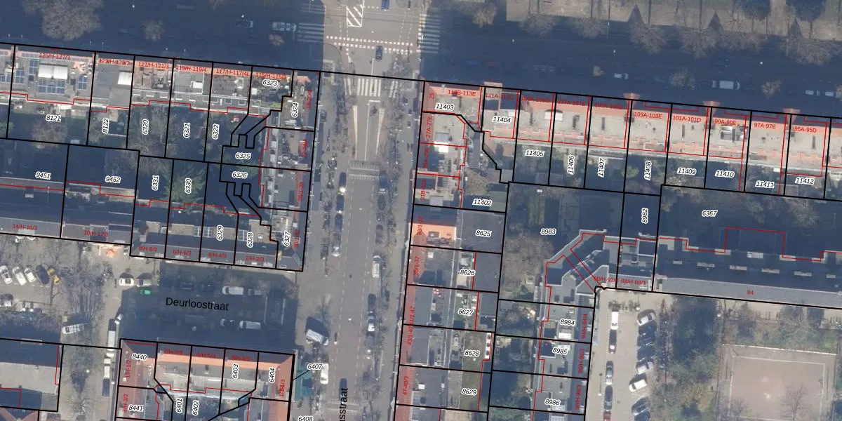 Het adres is gelegen op perceel 8625 in de sectie V en de kadastrale gemeente Amsterdam. De kadastrale aanduiding is aldus ASD18-V-8625. Het perceel is kleiner dan gemiddeld in Amsterdam. Het perceel is 212 m² groot, terwijl het gemiddelde ligt op 558,8 m². Het grootste perceel in de kadastrale gemeente is 12,5 ha. Het kleinste perceel heeft een oppervlakte van 0 m². Er zijn 5 adressen aanwezig op het perceel. De laatste wijziging in het de Basisregistratie Kadaster (BRK) was op 24-04-2007.