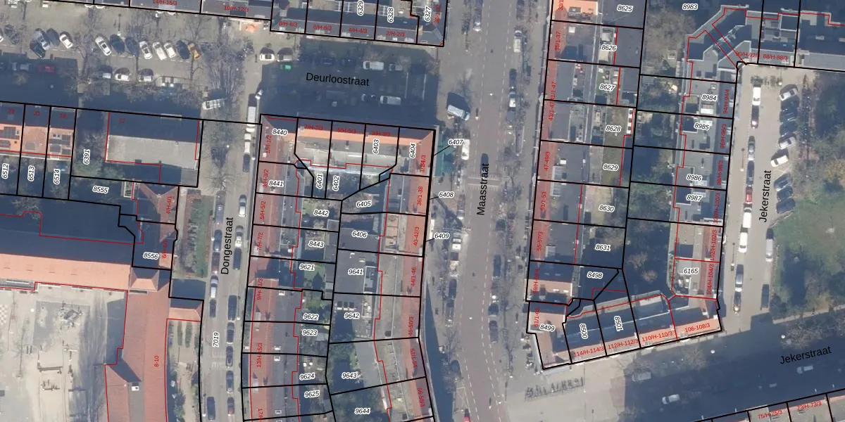 Maasstraat 38 is gelegen op kadastraal perceel ASD18V6405. Deze kadastrale aanduiding is uniek en wordt gebruikt door het Kadaster om eigendomsrechten en andere zakelijke rechten vast te leggen. Het perceel maakt onderdeel uit van de kadastrale gemeente Amsterdam.