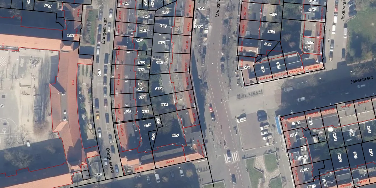 Maasstraat 56 is gelegen op kadastraal perceel ASD18V9644. Deze kadastrale aanduiding is uniek en wordt gebruikt door het Kadaster om eigendomsrechten en andere zakelijke rechten vast te leggen. Het perceel maakt onderdeel uit van de kadastrale gemeente Amsterdam.