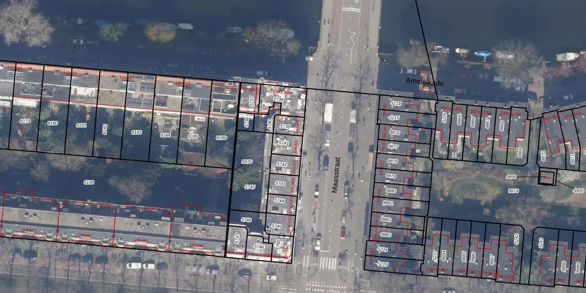 Maasstraat 6-H is gelegen op kadastraal perceel ASD18V5741. Deze kadastrale aanduiding is uniek en wordt gebruikt door het Kadaster om eigendomsrechten en andere zakelijke rechten vast te leggen. Het perceel maakt onderdeel uit van de kadastrale gemeente Amsterdam.