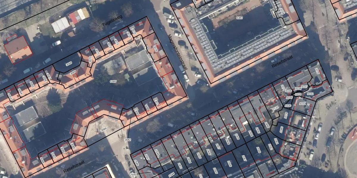 Het perceel waarop het adres ligt is ASD19-W-6385. De afkorting 'ASD19' staat voor kadastrale gemeente Amsterdam. De gemiddelde perceeloppervlakte in de kadastrale gemeente Amsterdam is 1563,05 m². Dit perceel is met zijn 3292 m² dus groter dan gemiddeld. Het kleinste perceel in de kadastrale gemeente is 0 m² groot. De grootste perceeloppervlakte is 17,9 ha. Op het perceel liggen in totaal 52 adressen. De huidige grenzen van het perceel zijn digitaal in de Basisregistratie Kadaster (BRK) geregistreerd op 01-11-2006.