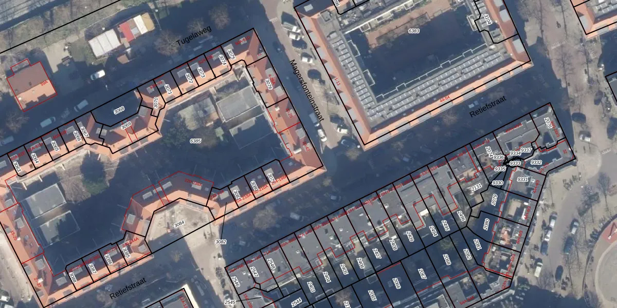 Het perceel waarop het adres ligt is ASD19-W-6385. De afkorting 'ASD19' staat voor kadastrale gemeente Amsterdam. De gemiddelde perceeloppervlakte in de kadastrale gemeente Amsterdam is 1563,05 m². Dit perceel is met zijn 3292 m² dus groter dan gemiddeld. Het kleinste perceel in de kadastrale gemeente is 0 m² groot. De grootste perceeloppervlakte is 17,9 ha. Er zijn 52 adressen aanwezig op het perceel. In de Basisregistratie Kadaster (BRK) werden de grenzen van het perceel geregistreerd op 01-11-2006.