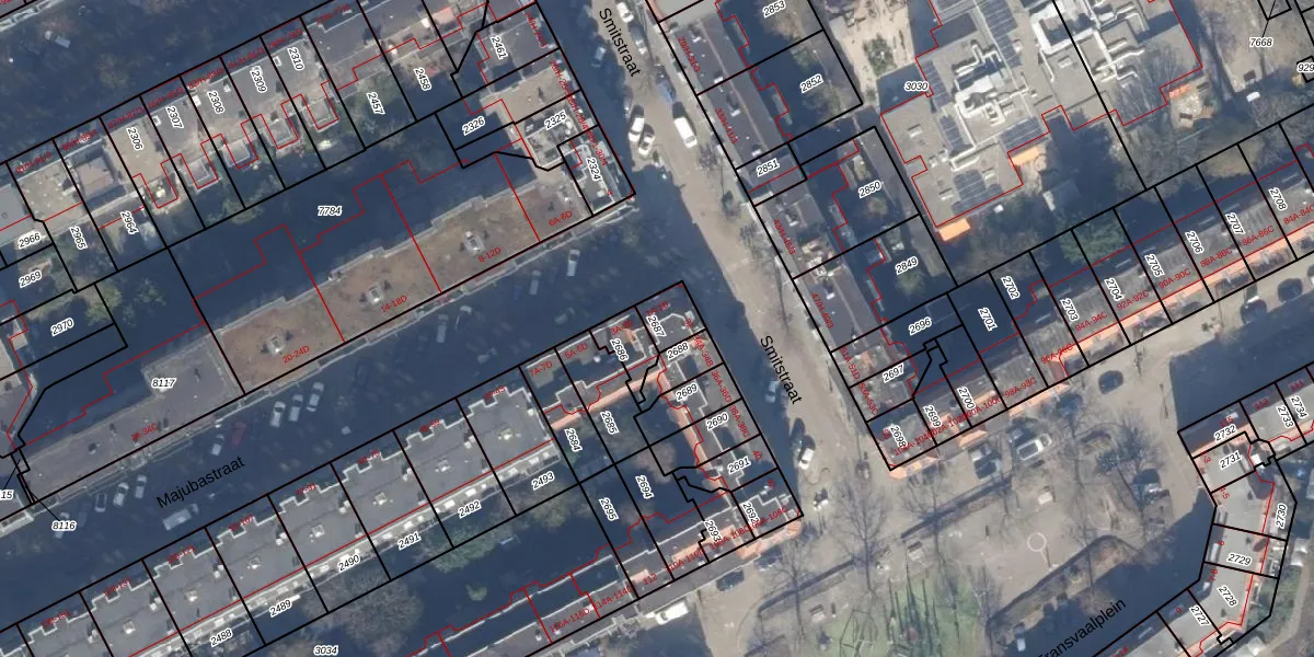 Het perceel waarop Majubastraat 1-A staat heeft een oppervlakte van 63 m². Dit is een klein perceel. De perceeloppervlakte wordt geregistreerd door het Kadaster. Gedetailleerde informatie over de maten van dit perceel kunt u vinden in het rapport Kadastrale kaart met maatvoering van Majubastraat 1-A.