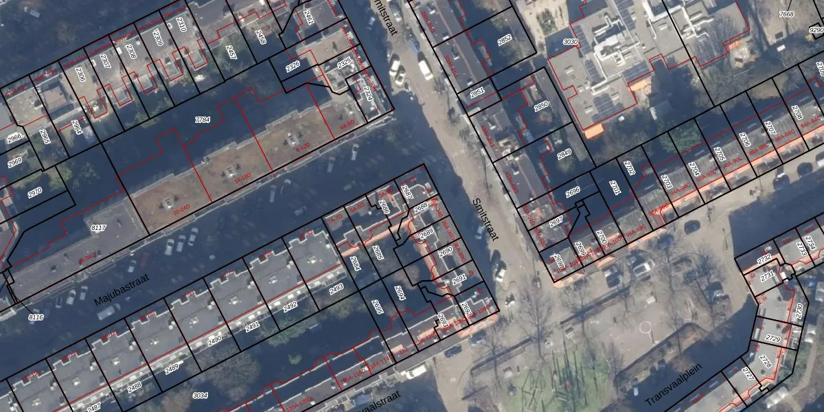 Het perceel waarop Majubastraat 1-B staat heeft een oppervlakte van 63 m². Dit is een klein perceel. De perceeloppervlakte wordt geregistreerd door het Kadaster. Gedetailleerde informatie over de maten van dit perceel kunt u vinden in het rapport Kadastrale kaart met maatvoering van Majubastraat 1-B.