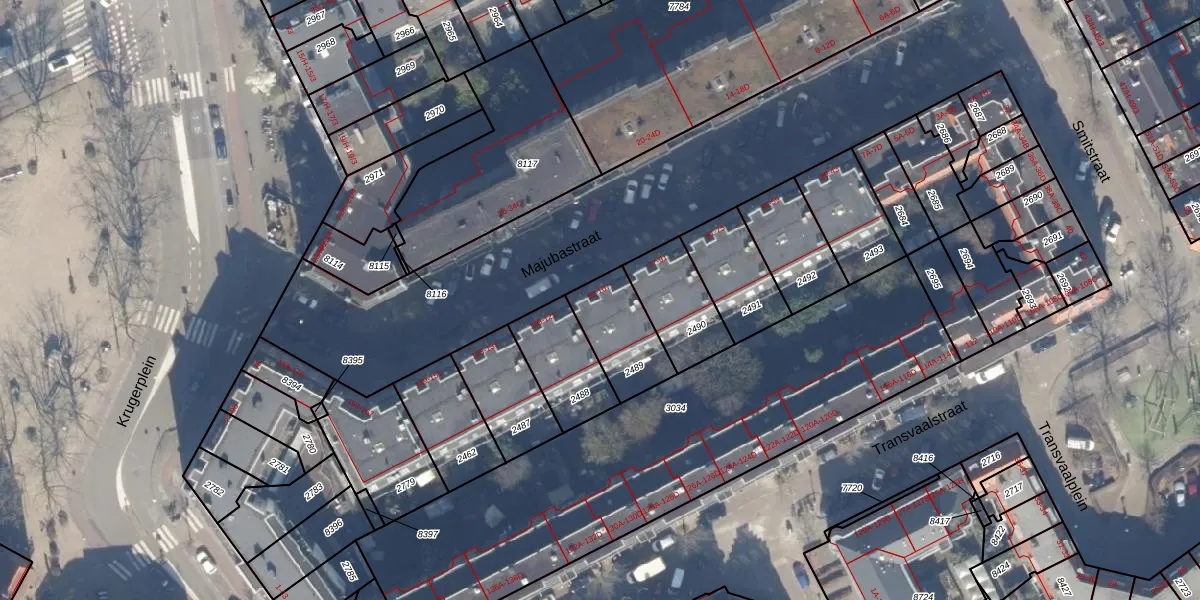 Majubastraat 95 is gelegen op kadastraal perceel ASD19W2489. Deze kadastrale aanduiding is uniek en wordt gebruikt door het Kadaster om eigendomsrechten en andere zakelijke rechten vast te leggen. Het perceel maakt onderdeel uit van de kadastrale gemeente Amsterdam.