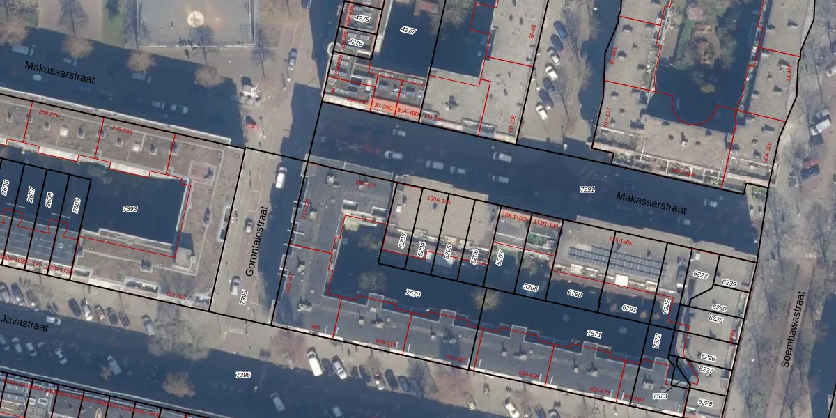 Het perceel waarop Makassarstraat 100-D staat heeft een oppervlakte van 125 m². Dit is een middelgroot perceel. De perceeloppervlakte wordt geregistreerd door het Kadaster. Gedetailleerde informatie over de maten van dit perceel kunt u vinden in het rapport Kadastrale kaart met maatvoering van Makassarstraat 100-D.