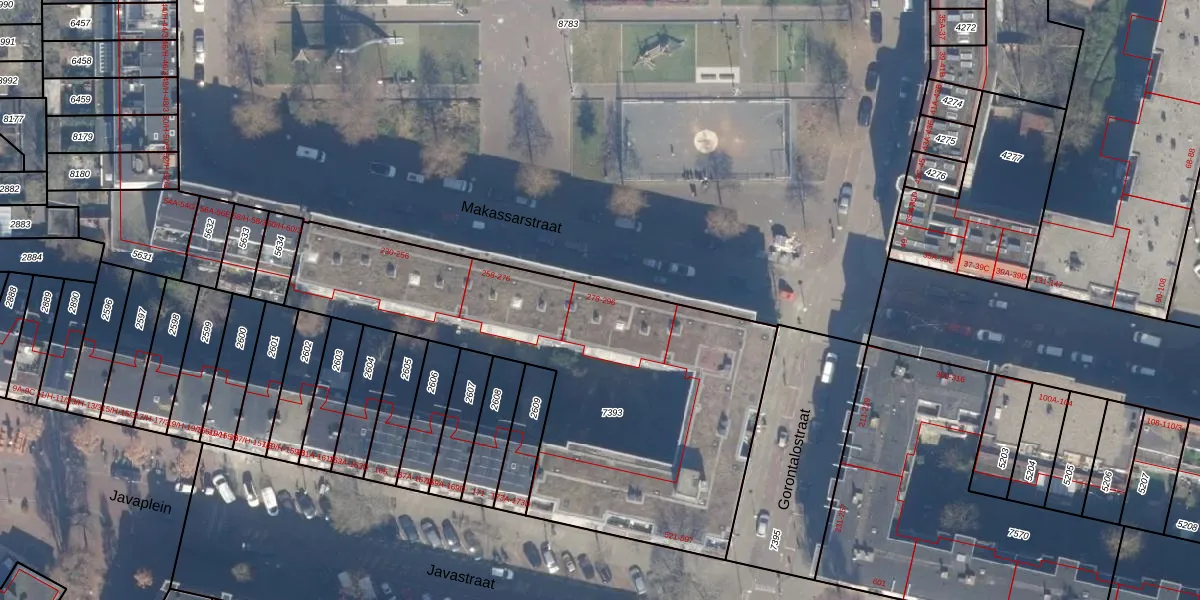 Het perceel waarop Makassarstraat 280 staat heeft een oppervlakte van 2085 m². Dit is een zeer groot perceel. De perceeloppervlakte wordt geregistreerd door het Kadaster. Gedetailleerde informatie over de maten van dit perceel kunt u vinden in het rapport Kadastrale kaart met maatvoering van Makassarstraat 280.