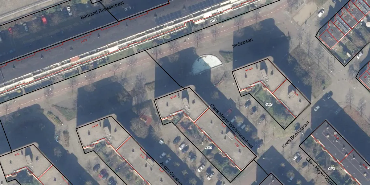 Het perceel waarop Maliebaan 94 staat heeft een oppervlakte van 1154 m². Dit is een zeer groot perceel. De perceeloppervlakte wordt geregistreerd door het Kadaster. Gedetailleerde informatie over de maten van dit perceel kunt u vinden in het rapport Kadastrale kaart met maatvoering van Maliebaan 94.