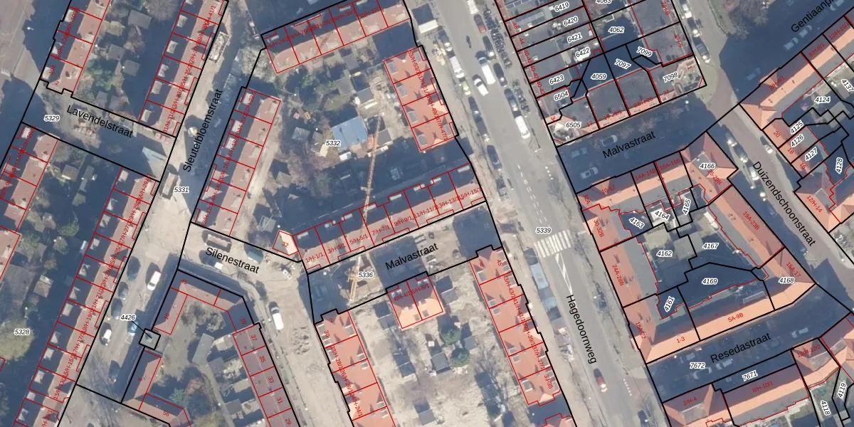 Het perceel waarop Malvastraat 11-1 staat heeft een oppervlakte van 2876 m². Dit is een zeer groot perceel. De perceeloppervlakte wordt geregistreerd door het Kadaster. Gedetailleerde informatie over de maten van dit perceel kunt u vinden in het rapport Kadastrale kaart met maatvoering van Malvastraat 11-1.