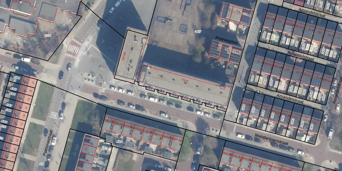 Het perceel waarop Mandarijnenstraat 25-D staat heeft een oppervlakte van 5200 m². Dit is een zeer groot perceel. De perceeloppervlakte wordt geregistreerd door het Kadaster. Gedetailleerde informatie over de maten van dit perceel kunt u vinden in het rapport Kadastrale kaart met maatvoering van Mandarijnenstraat 25-D.