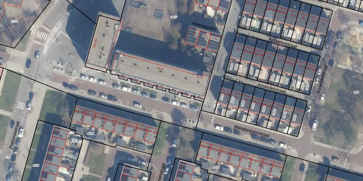 Het perceel waarop Mandarijnenstraat 39 staat heeft een oppervlakte van 5200 m². Dit is een zeer groot perceel. De perceeloppervlakte wordt geregistreerd door het Kadaster. Gedetailleerde informatie over de maten van dit perceel kunt u vinden in het rapport Kadastrale kaart met maatvoering van Mandarijnenstraat 39.