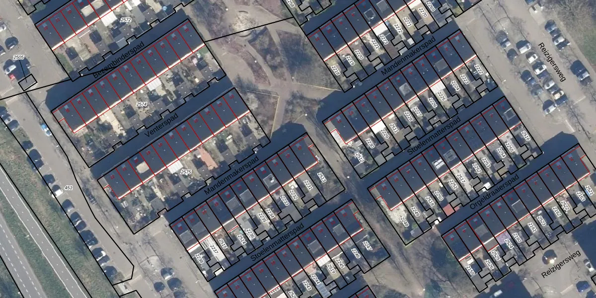 Gebruik de zoekbalk of klik op een perceel voor informatie over de adressen binnen dit perceel.