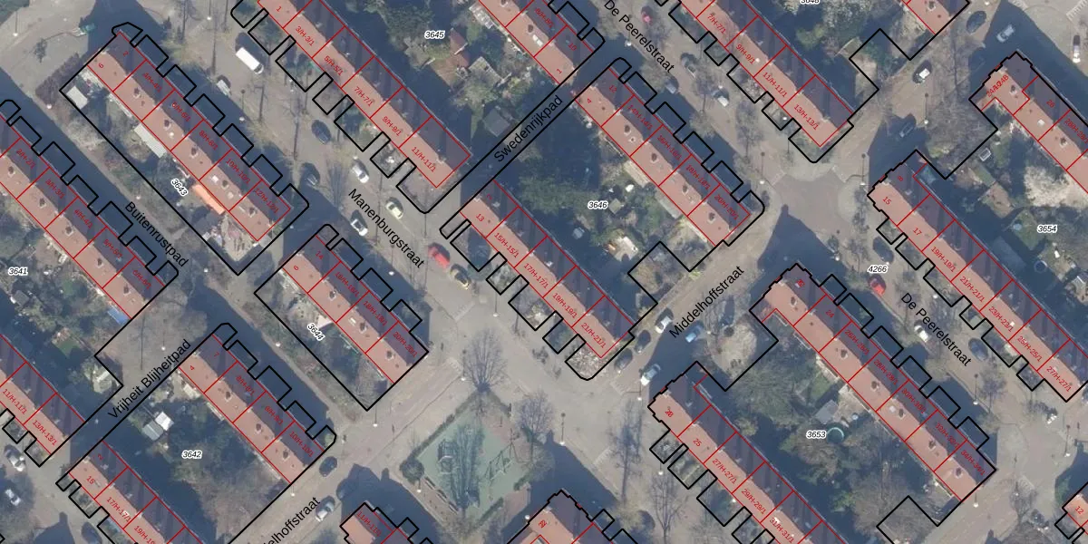 Het perceel waarop Manenburgstraat 17-1 staat heeft een oppervlakte van 1620 m². Dit is een zeer groot perceel. De perceeloppervlakte wordt geregistreerd door het Kadaster. Gedetailleerde informatie over de maten van dit perceel kunt u vinden in het rapport Kadastrale kaart met maatvoering van Manenburgstraat 17-1.