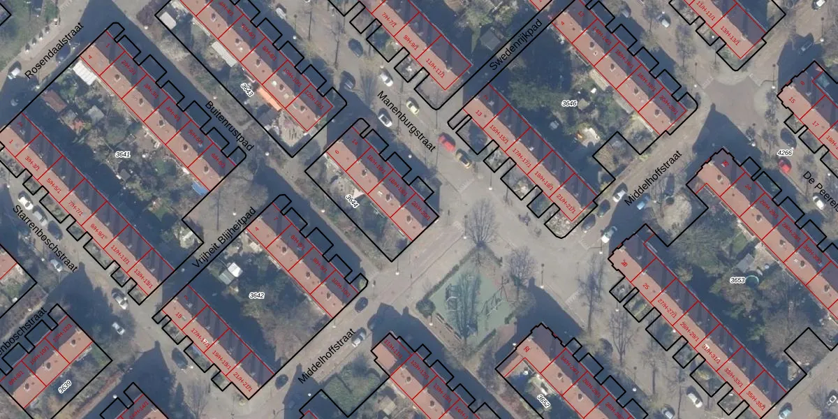 Het perceel waarop Manenburgstraat 20-1 staat heeft een oppervlakte van 524 m². Dit is een groot perceel. De perceeloppervlakte wordt geregistreerd door het Kadaster. Gedetailleerde informatie over de maten van dit perceel kunt u vinden in het rapport Kadastrale kaart met maatvoering van Manenburgstraat 20-1.