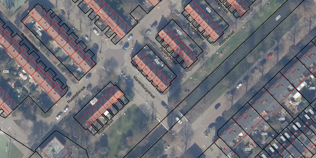 Het perceel waarop Manenburgstraat 45 staat heeft een oppervlakte van 404 m². Dit is een groot perceel. De perceeloppervlakte wordt geregistreerd door het Kadaster. Gedetailleerde informatie over de maten van dit perceel kunt u vinden in het rapport Kadastrale kaart met maatvoering van Manenburgstraat 45.