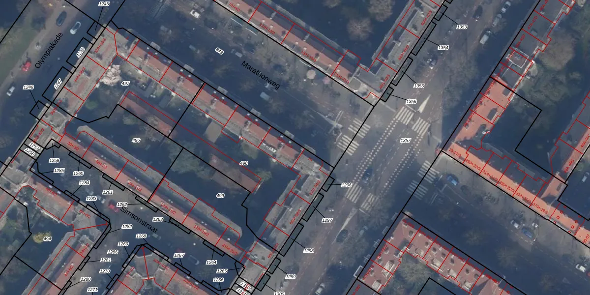 Het perceel waarop het adres ligt is ASD24-AC-498. De afkorting 'ASD24' staat voor kadastrale gemeente Amsterdam. De gemiddelde perceeloppervlakte in de kadastrale gemeente Amsterdam is 1365,99 m². Dit perceel is met zijn 1367 m² dus groter dan gemiddeld. Het grootste perceel in de kadastrale gemeente is 11,7 ha. Het kleinste perceel heeft een oppervlakte van 1 m². Er zijn 43 adressen aanwezig op het perceel. De laatste wijziging in het de Basisregistratie Kadaster (BRK) was op 30-11-2010.