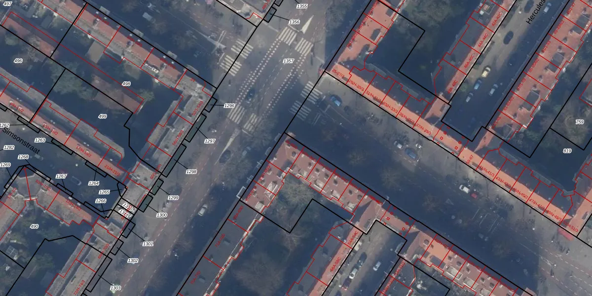 Het perceel waarop het adres ligt is ASD24-AC-827. De afkorting 'ASD24' staat voor kadastrale gemeente Amsterdam. De gemiddelde perceeloppervlakte in de kadastrale gemeente Amsterdam is 1365,99 m². Dit perceel is met zijn 2077 m² dus groter dan gemiddeld. Het grootste perceel in de kadastrale gemeente is 11,7 ha. Het kleinste perceel heeft een oppervlakte van 1 m². Op het perceel zijn 74 adressen aanwezig. De laatste wijziging in het de Basisregistratie Kadaster (BRK) was op 30-11-2010.
