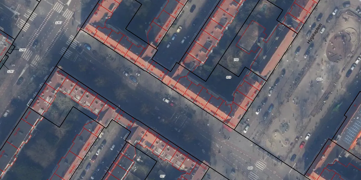 Het perceel waarop het adres ligt is ASD24-AC-819. De afkorting 'ASD24' staat voor kadastrale gemeente Amsterdam. De gemiddelde perceeloppervlakte in de kadastrale gemeente Amsterdam is 1361,91 m². Dit perceel is met zijn 2087 m² dus groter dan gemiddeld. Het kleinste perceel in de kadastrale gemeente is 1 m² groot. De grootste perceeloppervlakte is 5,8 ha. Er zijn 76 adressen aanwezig op het perceel. De huidige grenzen van het perceel zijn digitaal in de Basisregistratie Kadaster (BRK) geregistreerd op 30-11-2010.