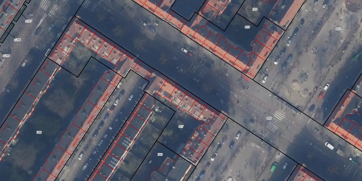 Het perceel waarop het adres ligt is ASD24-AC-827. De afkorting 'ASD24' staat voor kadastrale gemeente Amsterdam. De gemiddelde perceeloppervlakte in de kadastrale gemeente Amsterdam is 1365,99 m². Dit perceel is met zijn 2077 m² dus groter dan gemiddeld. Het kleinste perceel in de kadastrale gemeente is 1 m² groot. De grootste perceeloppervlakte is 11,7 ha. Op het perceel zijn 74 adressen aanwezig. In de Basisregistratie Kadaster (BRK) werden de grenzen van het perceel geregistreerd op 30-11-2010.
