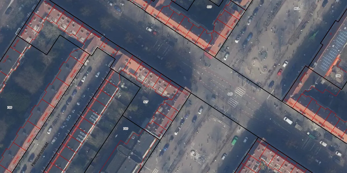 Het perceel waarop het adres ligt is ASD24-AC-827. De afkorting 'ASD24' staat voor kadastrale gemeente Amsterdam. De gemiddelde perceeloppervlakte in de kadastrale gemeente Amsterdam is 1365,99 m². Dit perceel is met zijn 2077 m² dus groter dan gemiddeld. Het kleinste perceel in de kadastrale gemeente is 1 m² groot. De grootste perceeloppervlakte is 11,7 ha. Op het perceel zijn 74 adressen aanwezig. In de Basisregistratie Kadaster (BRK) werden de grenzen van het perceel geregistreerd op 30-11-2010.