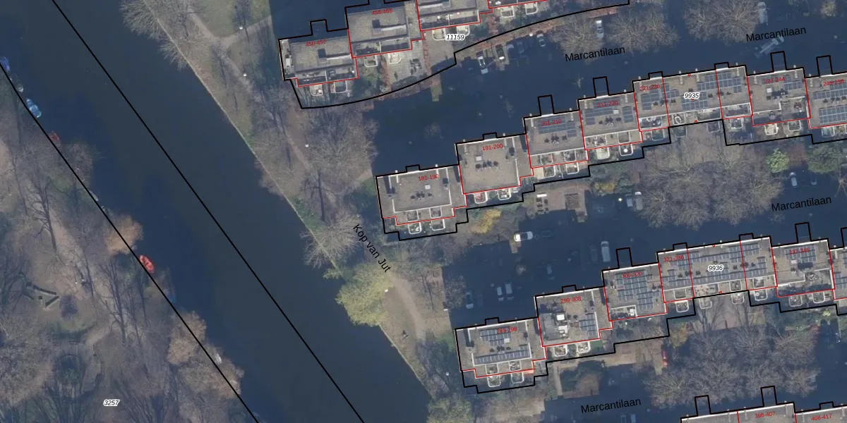 Het perceel waarop Marcantilaan 188 staat heeft een oppervlakte van 2455 m². Dit is een zeer groot perceel. De perceeloppervlakte wordt geregistreerd door het Kadaster. Gedetailleerde informatie over de maten van dit perceel kunt u vinden in het rapport Kadastrale kaart met maatvoering van Marcantilaan 188.