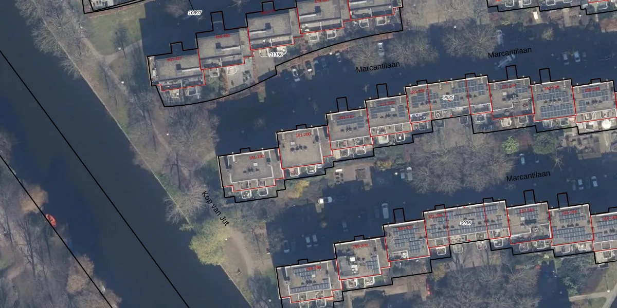 Het perceel waarop Marcantilaan 197 staat heeft een oppervlakte van 2455 m². Dit is een zeer groot perceel. De perceeloppervlakte wordt geregistreerd door het Kadaster. Gedetailleerde informatie over de maten van dit perceel kunt u vinden in het rapport Kadastrale kaart met maatvoering van Marcantilaan 197.