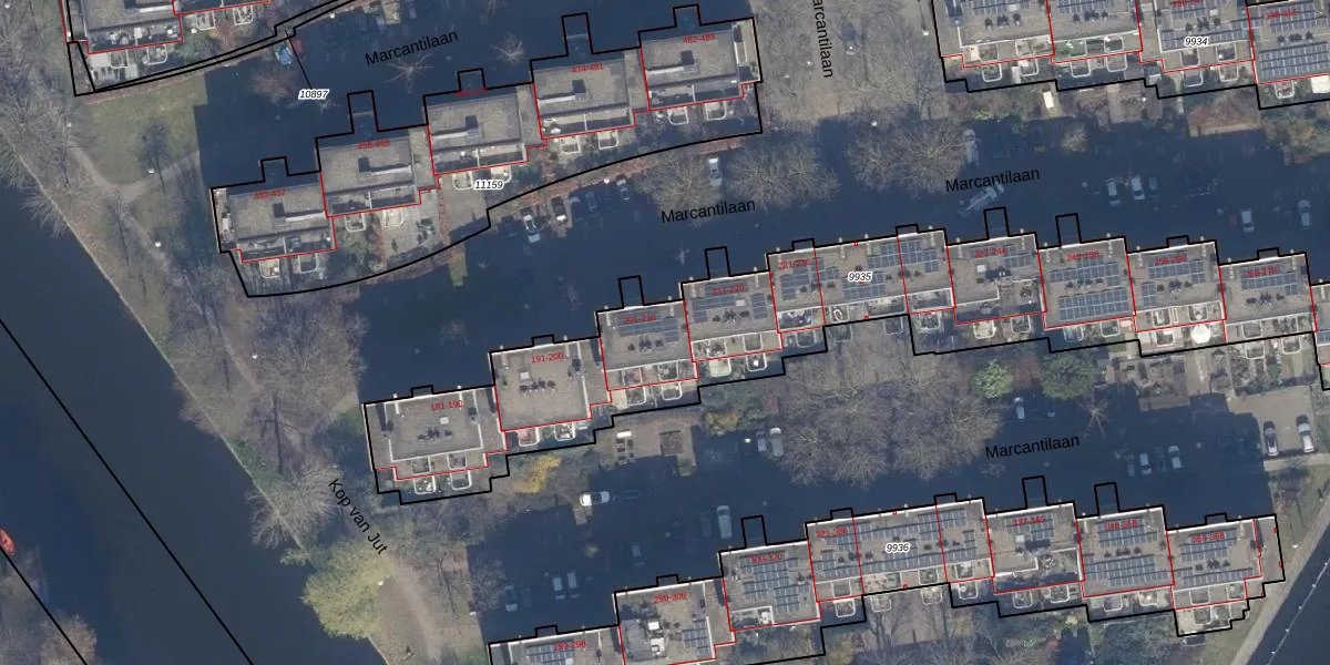 Het perceel waarop Marcantilaan 210 staat heeft een oppervlakte van 2455 m². Dit is een zeer groot perceel. De perceeloppervlakte wordt geregistreerd door het Kadaster. Gedetailleerde informatie over de maten van dit perceel kunt u vinden in het rapport Kadastrale kaart met maatvoering van Marcantilaan 210.