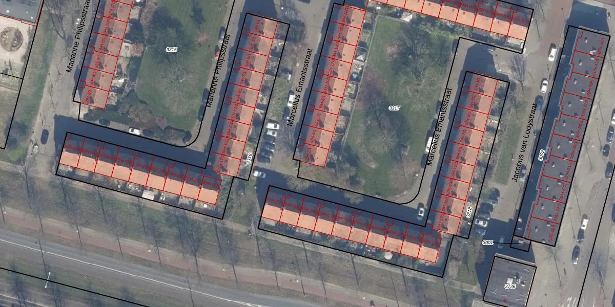 Het perceel waarop Marcellus Emantsstraat 2-1 staat heeft een oppervlakte van 3262 m². Dit is een zeer groot perceel. De perceeloppervlakte wordt geregistreerd door het Kadaster. Gedetailleerde informatie over de maten van dit perceel kunt u vinden in het rapport Kadastrale kaart met maatvoering van Marcellus Emantsstraat 2-1.
