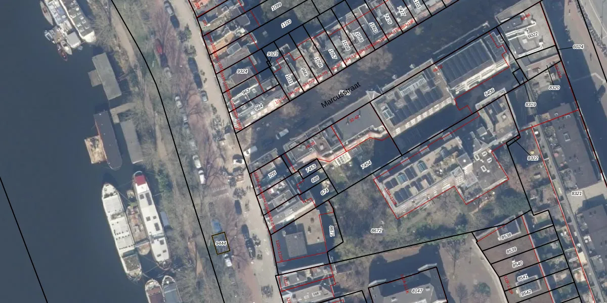 Het perceel waarop Marcusstraat 20 staat heeft een oppervlakte van 563 m². Dit is een groot perceel. De perceeloppervlakte wordt geregistreerd door het Kadaster. Gedetailleerde informatie over de maten van dit perceel kunt u vinden in het rapport Kadastrale kaart met maatvoering van Marcusstraat 20.