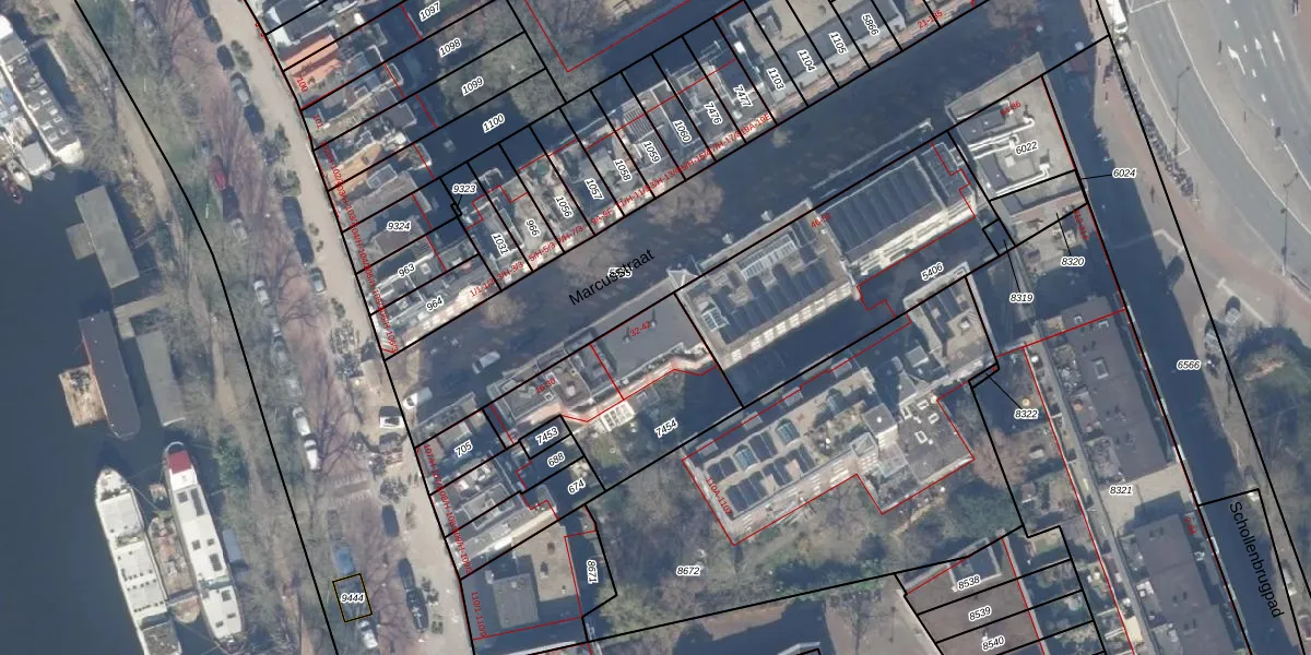 Het perceel waarop Marcusstraat 40 staat heeft een oppervlakte van 563 m². Dit is een groot perceel. De perceeloppervlakte wordt geregistreerd door het Kadaster. Gedetailleerde informatie over de maten van dit perceel kunt u vinden in het rapport Kadastrale kaart met maatvoering van Marcusstraat 40.