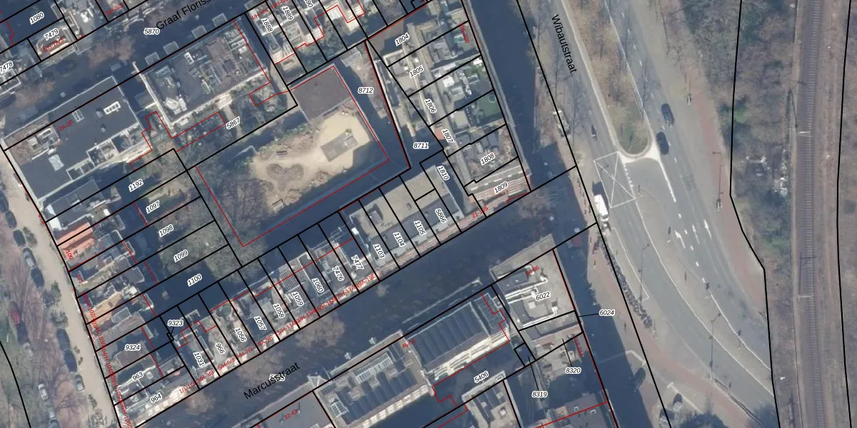 Het perceel waarop Marcusstraat 41 staat heeft een oppervlakte van 68 m². Dit is een klein perceel. De perceeloppervlakte wordt geregistreerd door het Kadaster. Gedetailleerde informatie over de maten van dit perceel kunt u vinden in het rapport Kadastrale kaart met maatvoering van Marcusstraat 41.