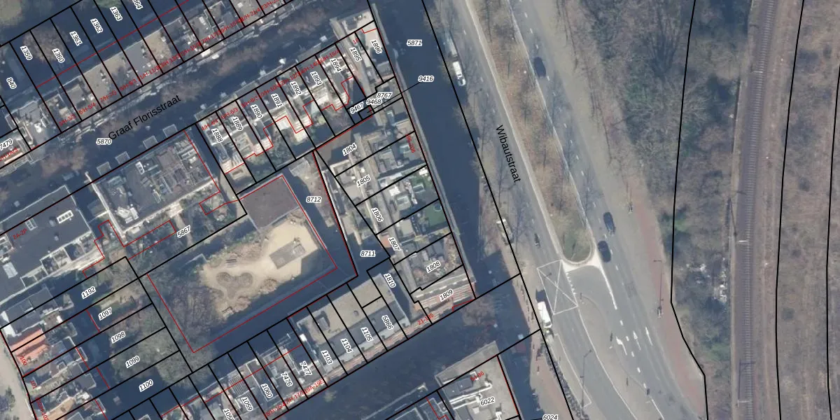 Het perceel waarop het adres ligt is ASD19-W-1806. De afkorting 'ASD19' staat voor kadastrale gemeente Amsterdam. Het perceel is 156 m² groot. Dat is kleiner dan de gemiddelde perceeloppervlakte in Amsterdam, dat op 1563,61 m² ligt. Het grootste perceel in de kadastrale gemeente is 17,9 ha. Het kleinste perceel heeft een oppervlakte van 0 m². Er zijn 7 adressen aanwezig op het perceel. De laatste wijziging in het de Basisregistratie Kadaster (BRK) was op 14-11-2006.