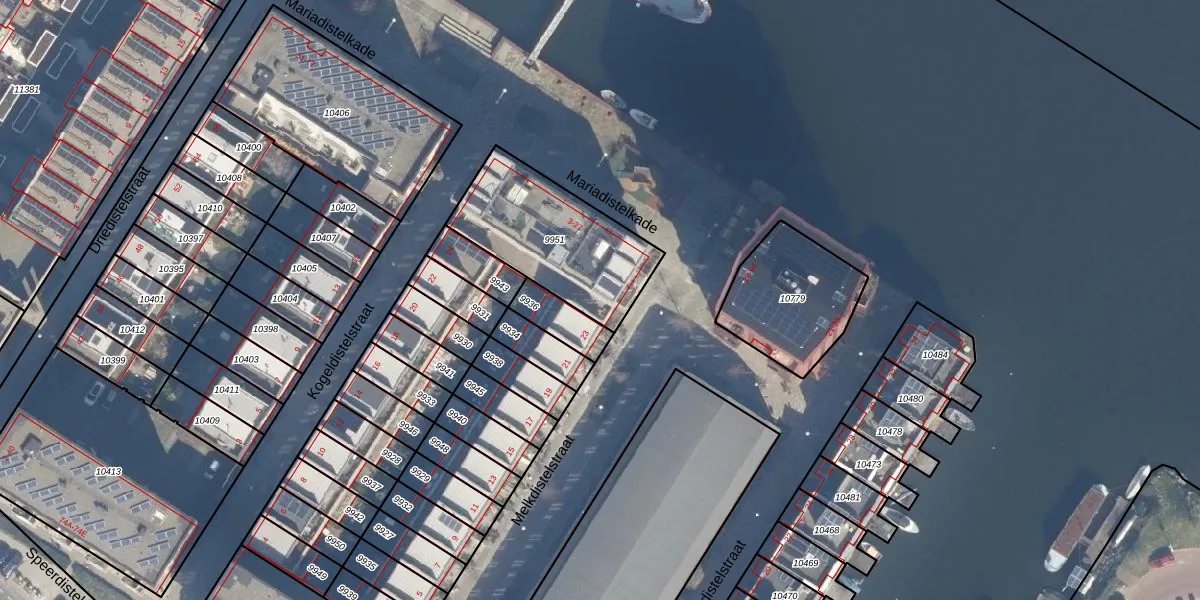 Het perceel waarop Mariadistelkade 21 staat heeft een oppervlakte van 528 m². Dit is een groot perceel. De perceeloppervlakte wordt geregistreerd door het Kadaster. Gedetailleerde informatie over de maten van dit perceel kunt u vinden in het rapport Kadastrale kaart met maatvoering van Mariadistelkade 21.