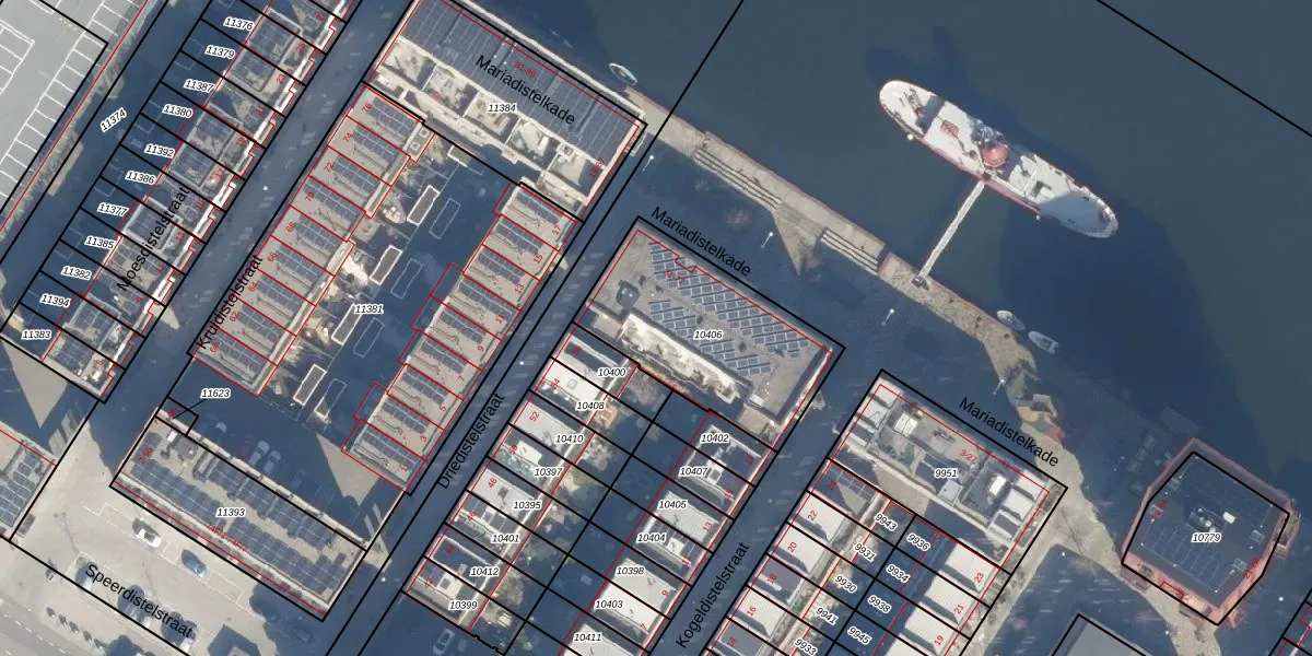 Het perceel waarop Mariadistelkade 63 staat heeft een oppervlakte van 713 m². Dit is een groot perceel. De perceeloppervlakte wordt geregistreerd door het Kadaster. Gedetailleerde informatie over de maten van dit perceel kunt u vinden in het rapport Kadastrale kaart met maatvoering van Mariadistelkade 63.