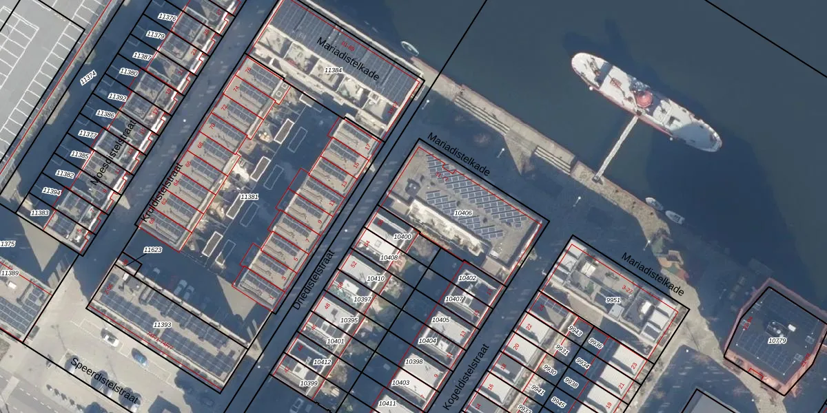Het perceel waarop Mariadistelkade 69 staat heeft een oppervlakte van 713 m². Dit is een groot perceel. De perceeloppervlakte wordt geregistreerd door het Kadaster. Gedetailleerde informatie over de maten van dit perceel kunt u vinden in het rapport Kadastrale kaart met maatvoering van Mariadistelkade 69.