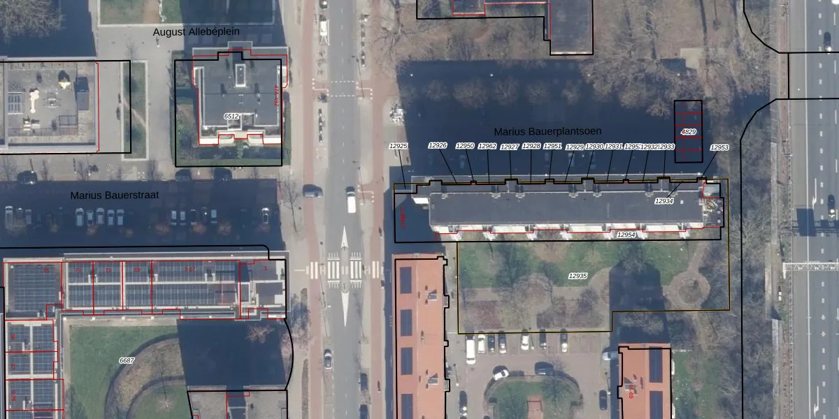 Het perceel waarop Marius Bauerplantsoen 111 staat heeft een oppervlakte van 1076 m². Dit is een zeer groot perceel. De perceeloppervlakte wordt geregistreerd door het Kadaster. Gedetailleerde informatie over de maten van dit perceel kunt u vinden in het rapport Kadastrale kaart met maatvoering van Marius Bauerplantsoen 111.